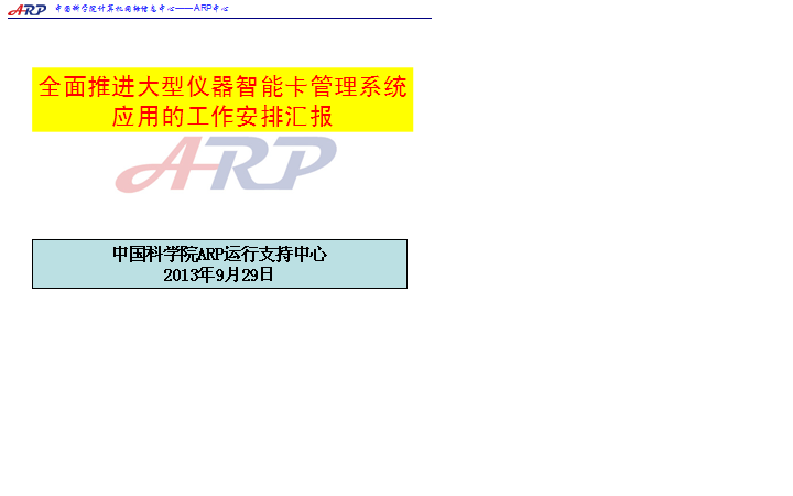 会上,院计财局科技条件处高级主管张红松传达了中国科学院关于安装大型仪器智能卡系统的相关工作精神,并对各区域中心智能卡系统工作的落实进行部署。随后,院ARP中心、院计算机网络信息中心以及Lims公司的相关负责人详细介绍了智能卡系统的整体情况、具体实施工作安排、刷卡系统安装前期准备事项以及智能卡管理系统实施规范等。