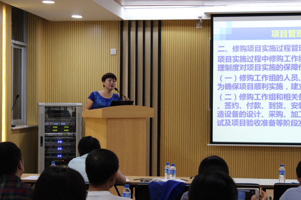 中国科学院生态环境研究中心周益奇介绍了“怎样做修购管理报告”。从项目执行流程、项目执行过程管理、关键环节把控方法、价格形成-公开招标方法(四步采购法:听报告、访客户、验样品、招标)、组织保障方案和项目档案管理方法等方面进行了讲解,并强调了各部门的修购工作组成员要切实履行其职责的重要性。
