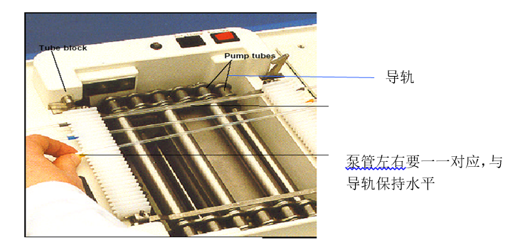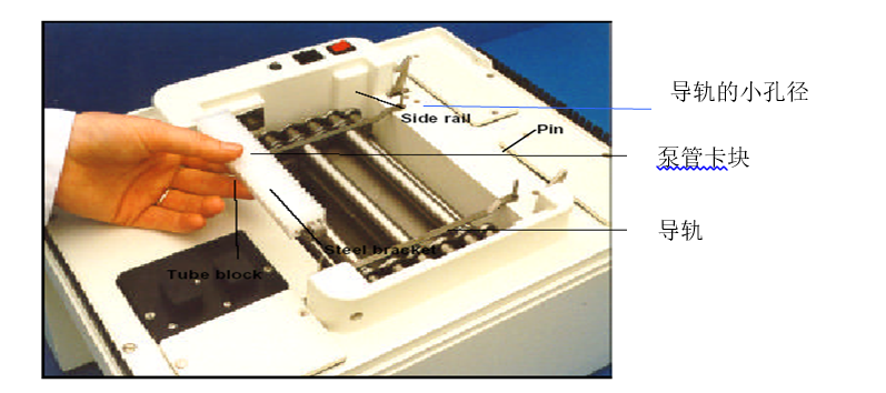 1.1 检查蠕动泵两侧导轨是否安装正确,泵管卡块是否安装到位。