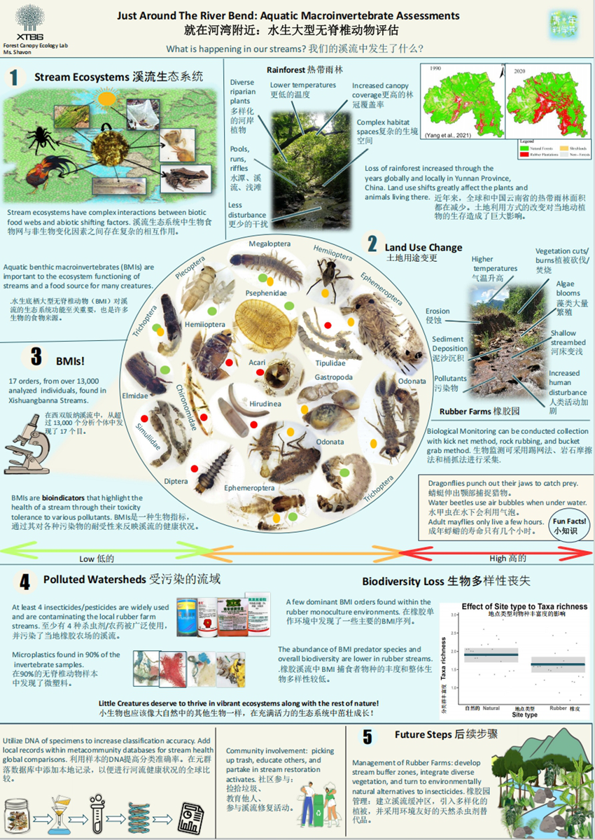 简介:溪流生态系统中生物食物网与非生物变化因素之间存在复杂的相互作用。水生底栖大型无脊椎动物(BMI)对溪流的生态系统功能至关重要,也是许多生物的食物来源。然而,由于近年来人们对土地利用方式的巨大影响,这些水生无脊椎动物的生存受到威胁。BMI的多样性可作为一种生物指标,通过其对各种污染物的耐受性来反映溪流的健康状况。科研人员对西双版纳的溪流水样进行了分析,从中提取出13000个分析个体,最终确定有17个目的类群。研究发现:至少有4种杀虫剂(或农药)被广泛使用,它们污染了当地橡胶农场的溪流;在90%的BMI样本中发现了微塑料;在橡胶园这种单一环境中,BMI的多样性较低。研究者对橡胶园管理提出建议:应建立园中溪流缓冲区,引入多样化的植被,并采用环境友好的天然杀虫剂替代品;组织社区参与管理,捡拾垃圾、教育村民参与溪流水源的修复。