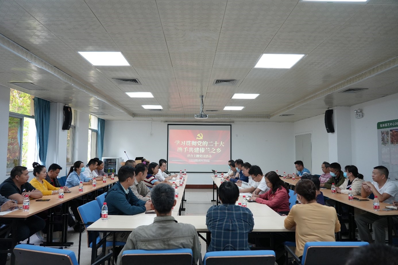 4月6日,版纳植物园机关党支部、业务党支部与勐仑镇党政机关党支部、青年人才党支部,以“学习贯彻党的二十大,携手共建傣兰之乡”为主题,围绕学习党的二十大及国家植物园创建工作联合组织开展主题党日活动。版纳植物园党委书记甘烦远、勐仑镇镇长欧丽雅、人大主席郑建伟以及双方有关部门同志共计50余名党员参加活动。
