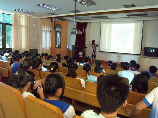 秋日的版纳植物园,渐渐浮起一丝凉意,却依然以它绿色的热情迎接每一位与自然有缘的来访者。10月30日下午,版纳植物园里多了孩子们的欢声笑语,勐仑中学的350多名初一、高一的新生在老师和科普讲解员的带领下参观了植物园西区,并在学术报告厅观看了视频《发展中的中国科学院西双版纳热带植物园》。然后,科普信息中心的许玲向同学们解说了植物园的形象识别系统,并连续做了三场关于“亲近自然”的科普报告。当问到同学们是否知道植物园是用来做什么的时候,有的说是给游客看的,有的说是为了保护珍稀植物的;谈到植物园的形象标识时,有的同学认为它代表“绿色家园”。