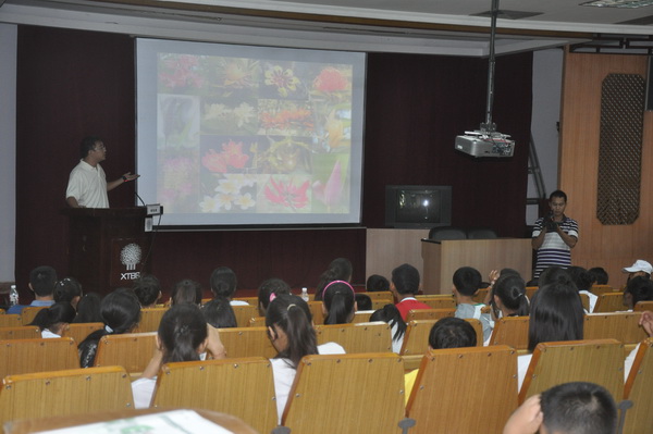 同学们在我园科普导游的引导下游览了版纳植物园的多个植物园专类园。虽然整个参观过程中都下着雨,同学们的热情仍然很高,时而在造型奇异的植物前驻足,时而围着导游提问,时而聚在一起讨论他们感兴趣的话题。科普旅游部还为同学们准备了一场名为《寻访雨林深处的家园》的科普报告。报告中介绍了生活在西双版纳热带雨林地区的少数民族以及他们的文化传统,还介绍了热带雨林中的奇特现象和所面临的威胁以及版纳植物园为保护热带雨林和生物多样性所作出的努力。报告结束后,同学们就雨林中一些奇特现象的成因进行了提问,也有许多同学认为自然是人类共同的家园,人们要从我做起,保护自然。
