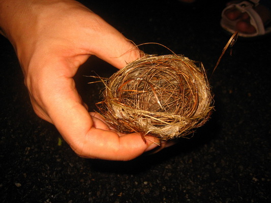 (快看!我捡到一个鸟窝,估计是被傍晚的雨打落在地上!做得真精致!)