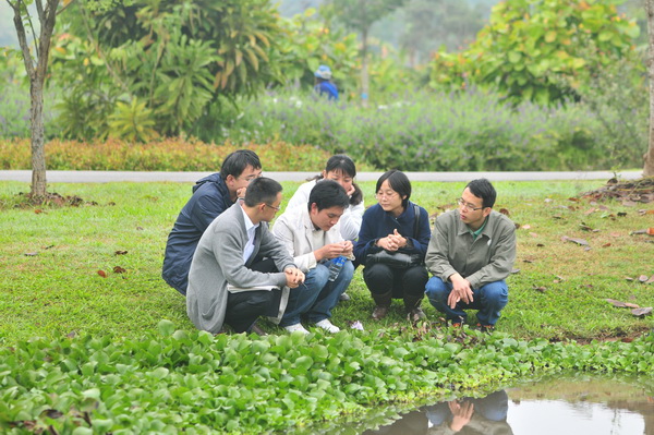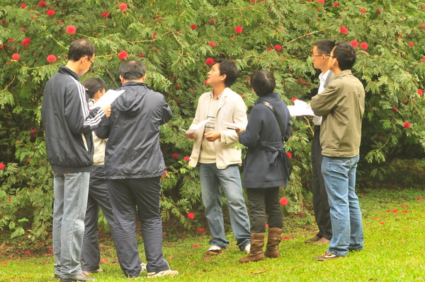 鉴于这些科学实验都是来源于最新鲜的科研前线,需要丰富的背景知识作为支撑,因此科普教育组计划通过培训来向实验设计者学习。在上周末的首次培训活动中,科普教育组邀请了以盗蜜行为为研究课题的研究生万金鹏为大家进行指导。在培训中,他首先介绍了自己为“大手拉小手”活动所设计的实验及注意事项,接着带领大家观察了一些已经被盗蜜的花,并讲述了许多花朵为预防自交而采取的策略。在整个培训过程中,大家认真观察,积极提问,既弥补了相关知识,又了解到了许多前沿的科学故事,为课程的开发搜集了第一手素材。