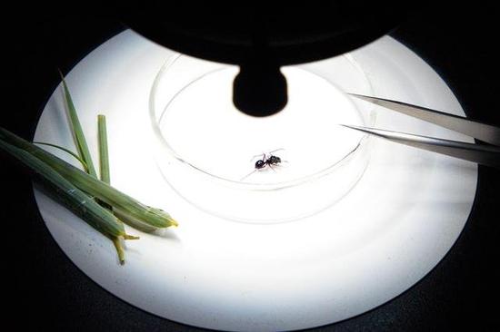 实验室观察大蚁蛛(供图:王晓亮/ 中科院科技摄影联盟)