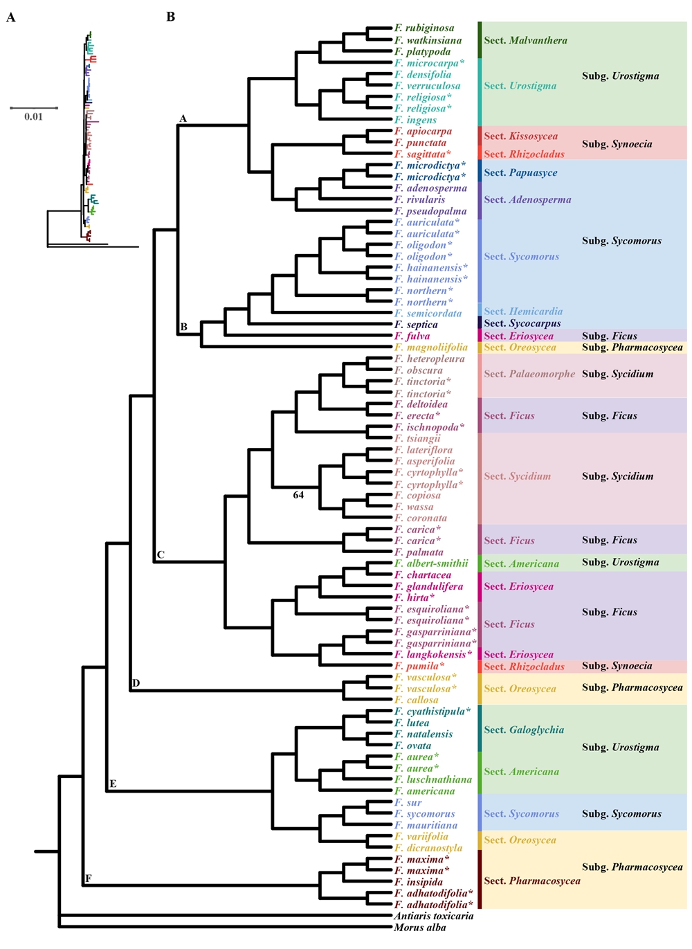 图1. 榕属物种叶绿体基因组系统发育树