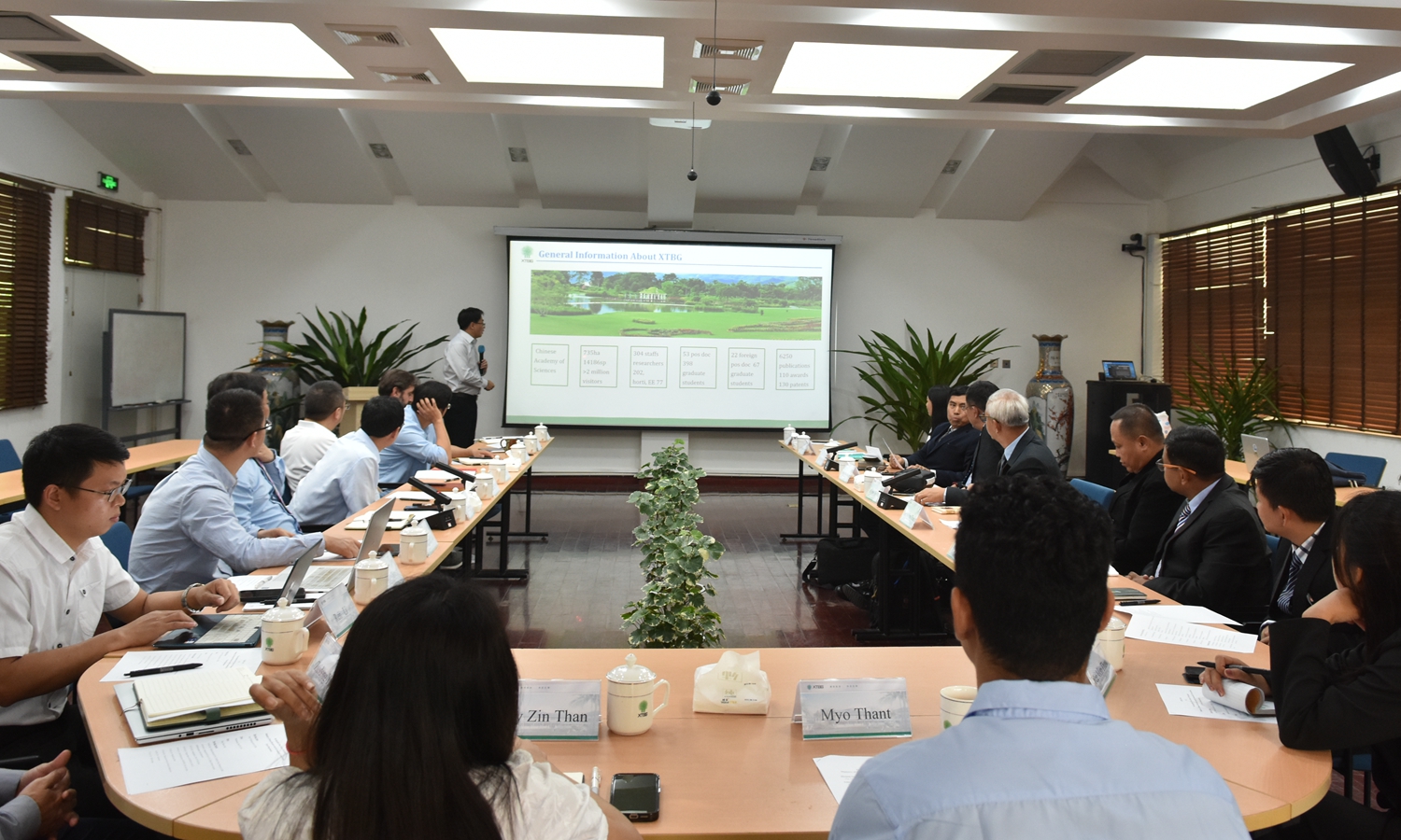 我方介绍版纳植物园各项工作进展情况。缅方介绍缅甸自然资源与环境保护部的基本情况及澜湄合作专项基金混农林项目工作进展。双方就学术交流、人才培养、野外生物多样性调查与保护、民生项目等方面合作进行深入研讨。