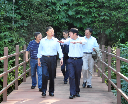 12月7日,云南省政府党组成员、资政刘平率省政府调研组专程到版纳植物园调研绿石林景区一期改造提升项目建设情况。园主任陈进、党委书记李宏伟、副主任李庆军陪同刘平一行现场考察了绿石林景区。