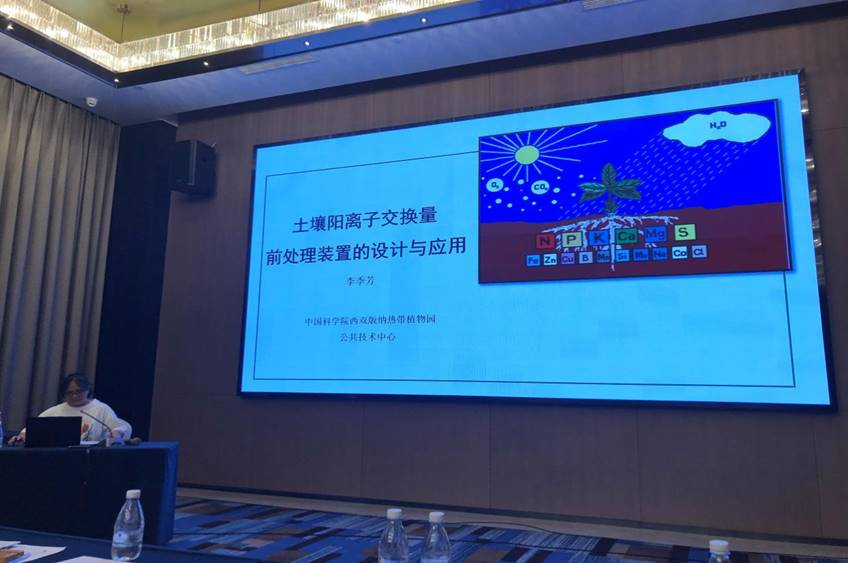 李季芳做“土壤阳离子交换量前处理装置的设计与应用”交流报告