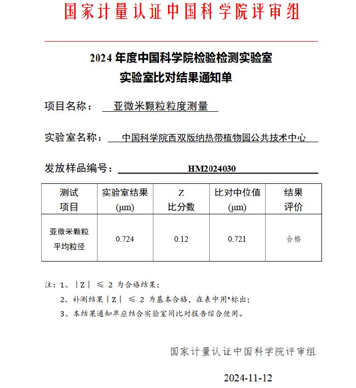 公共技术中心顺利通过“亚微米颗粒粒度测量”实验室间比对项目[2024-11-20] |