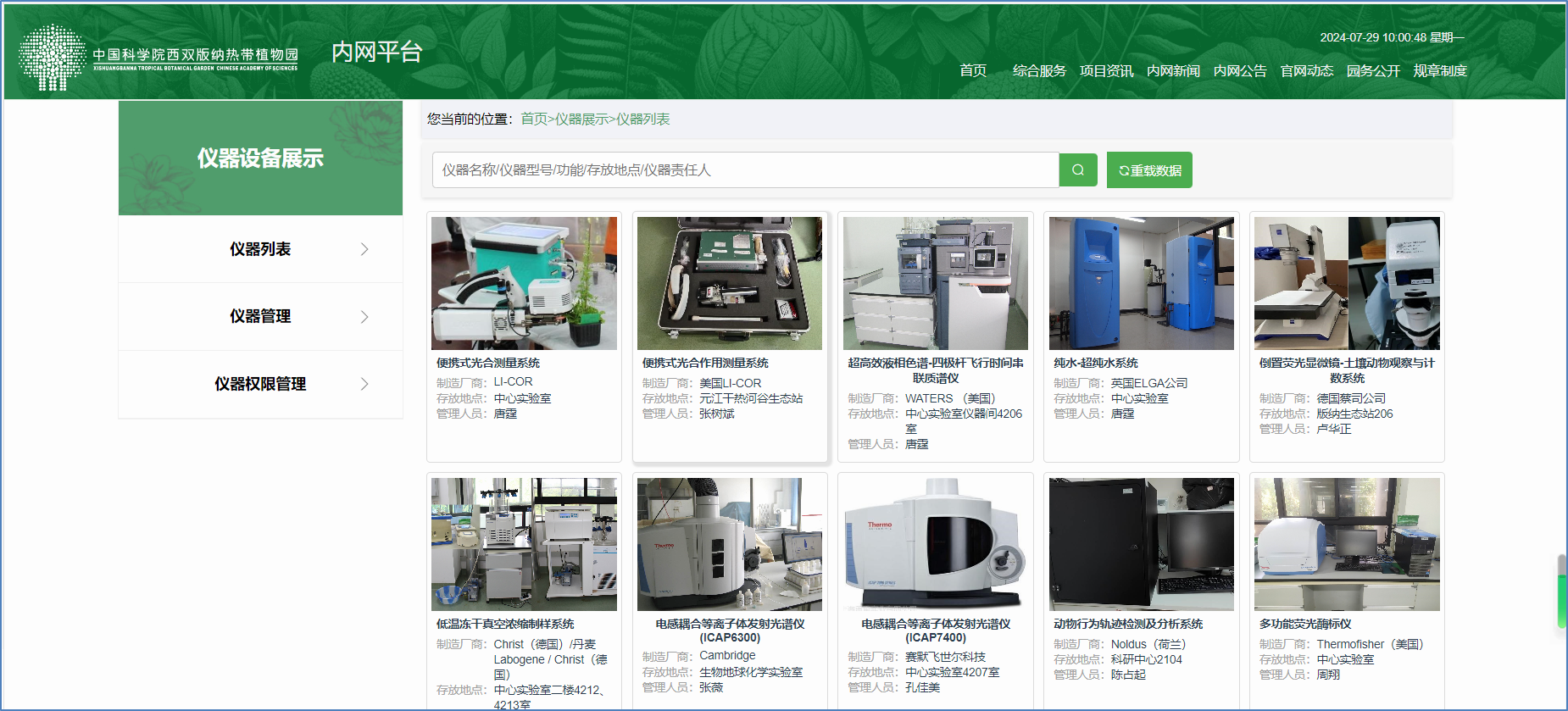公共技术中心和科技信息中心联合共建版纳植物园内网仪器设备查询库[2024-07-29] |