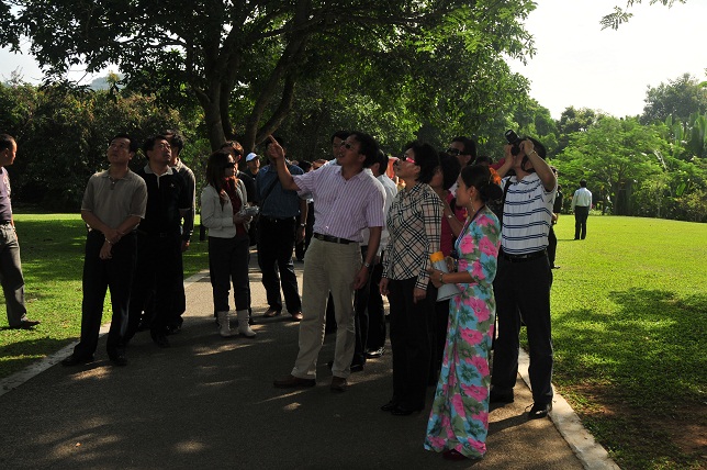 10月17日,安徽省副省长花建慧一行考察我园。西双版纳州委常委、州人民政府副州长陈启忠,州旅游局局长卢江泉、我园园副主任李庆军以及党政办公室主任黄加元陪同考察。