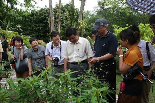 6月3日,全国政协教科文卫体委员会副主任、国家新闻出版总署原副署长于永湛一行考察西双版纳热带植物园。陪同人员有云南省政协教科文卫体委员会副主任袁显亮以及西双版纳州政协副主席李永义等领导。