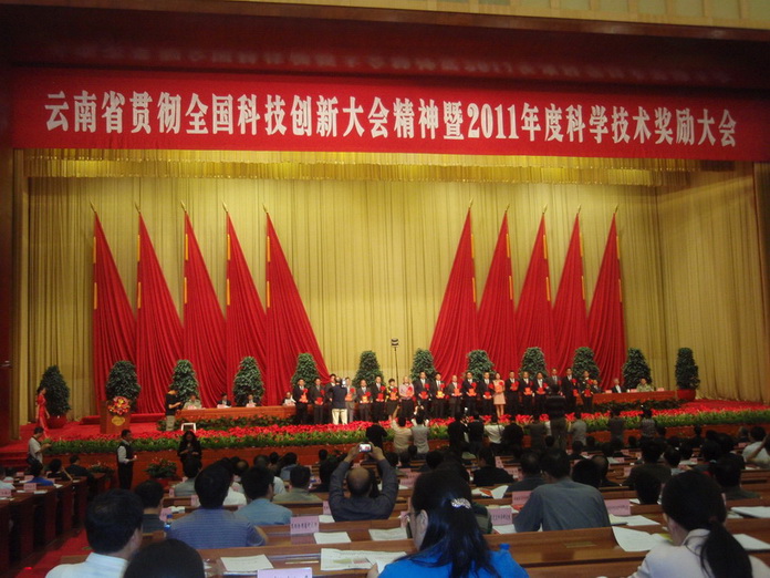表彰大会省领导宣读了《云南省人民政府关于2011年度云南省科学技术奖励的决定》,并向2011年度云南省科学技术奖杰出贡献奖获得者、中国工程院院士马洪琪为代表的获奖人员颁发了荣誉证书和奖金。