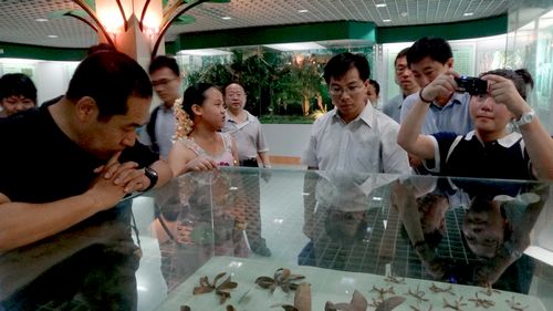 植物园副主任李庆军研究员、科普旅游部朱鸿祥部长以及科普旅游部主管、科普教育组成员参加了随后举行的“版纳植物园申报国家环保科普基地现场考察暨座谈会”。王西敏组长从我园科普教育的使命、人员和机构设置、四大科普品牌的创立、历年科普展览和科普活动概况、科普教育传播、科普研究、对外合作与交流以及未来的发展思路等方面向专家们做了简要而全面的报告。之后,考察团专家充分肯定了我园依托深厚的科研内涵、优美的园林景观基础之上的科普教育领域取得的丰硕成果,一致认为版纳植物园的环境教育水平体现了较高水准。