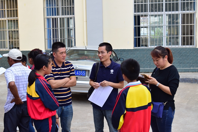 在会前进行的抽签结对登记和交流环节中,由版纳植物园青年职工和研究生组成的20人学习帮扶志愿者队伍以现场抽签的形式选择学习帮扶对象,并通过与学生及其家长就学生情况、帮扶安排等问题进行细致交流之后,与40名勐仑小学六年级学生结成“1+2”的学习帮扶对子。随后,在家长和志愿者的共同期待下,结对学生认真写下自己未来的梦想和目标,并将小小的心愿投入“梦想信箱”。