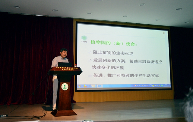 上午,陈进主任在植物园科普楼阶梯会议室作了题为《人类纪中植物园的新使命》的学术报告,报告会由冯煦副所长主持,薛建辉所长、宇文扬书记参加了报告会。陈进主任指出,大约从20世纪50年代开始,人类活动对大气、土壤、生物多样性等方面的影响已经超过了地球发展史上的任何一个时期,这个全新的时期被称为“人类纪”,在这一历史背景下,植物园应发挥植物界“诺亚方舟”的功能,阻止植物的生态灭绝、帮助生态系统适应环境的变化、促进并推广可持续的生产生活方式。报告过程中,陈进主任与参会人员进行了热烈的讨论和交流。报告会结束后,宇文扬书记陪同陈进主任一行参观了南、北园。