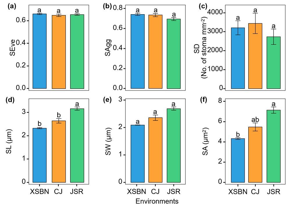 研究发现,与湿热环境相比,极端干热环境中清香木叶片的比叶面积和光合色素含量显著降低;在干热复合环境中,清香木叶片气孔密度无明显变化,但气孔面积显著增加;同时,叶片表皮蜡质层中C28伯醇的覆盖度显著升高,从而促进板状蜡质晶体的形成与沉积。结果表明,清香木在干热复合胁迫下采取了气孔—蜡质协同调控的适应策略:在持续干热胁迫下,通过增大气孔面积但不改变其密度,优化了叶片的散热效能;同时,通过增加醇类蜡质的合成与板状蜡质晶体的沉积,构建了兼具高反射光线与疏水功能的屏障,以调节叶温并减少蒸腾损耗。这种多性状的协同适应策略赋予了清香木对极端干热复合环境优异耐受性。研究结果为未来极端复合环境背景下干热河谷区的生态恢复树种选择提供了直接的理论基础,也为预测植物在未来复合气候变化情境下的分布格局和生长表现提供了机理性框架。